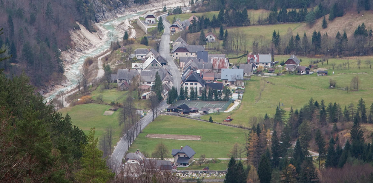The Primorska side of the park is characterised by the dispersed settlement pattern – scattered hamlets (isolated farms or groups of one or two homesteads) are common in Trenta, Soča, Vrsnik, Lepena and Bavšica. The only deviations from this pattern are clustered villages with village centres (Na Logu v Trenti and Soča) and the Mediterranean settlement pattern which comprises groups of homestead units or several homesteads along a transport route (Strmec, Gornji Log pod Mangartom, Spodnji Log pod Mangrtom).