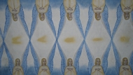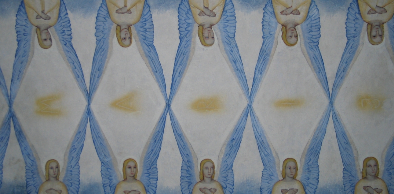 The interior of the church was painted in 1945 by the artist Tone Kralj. He worked within the context of the resistance against the Italian fascist authorities in Slovenian territory, which had been annexed to the Kingdom of Italy after the First World War under the Treaty of Rapallo. In his church murals, Kralj incorporated anti-war, anti-fascist and anti-Nazi symbols, while at the same time using his art to affirm the Slovenian national space.