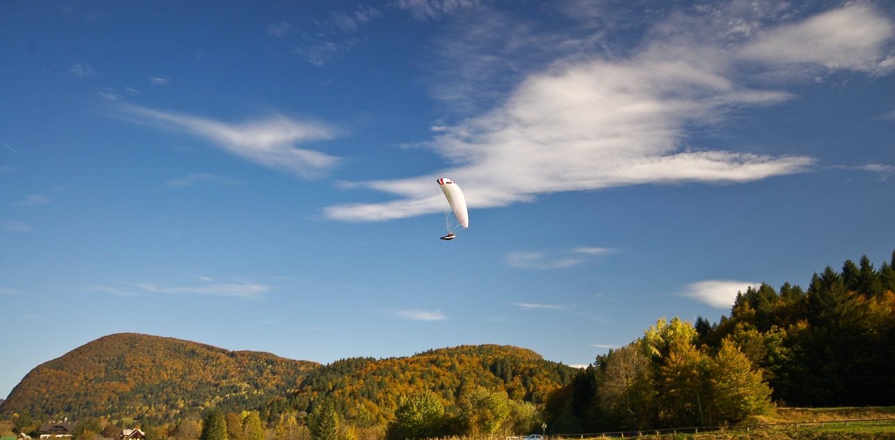 vzletna točka Strmec na Predelu N 46°25.297' E 13°36.4055'